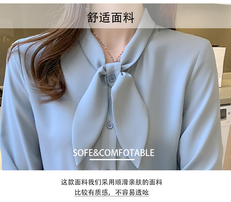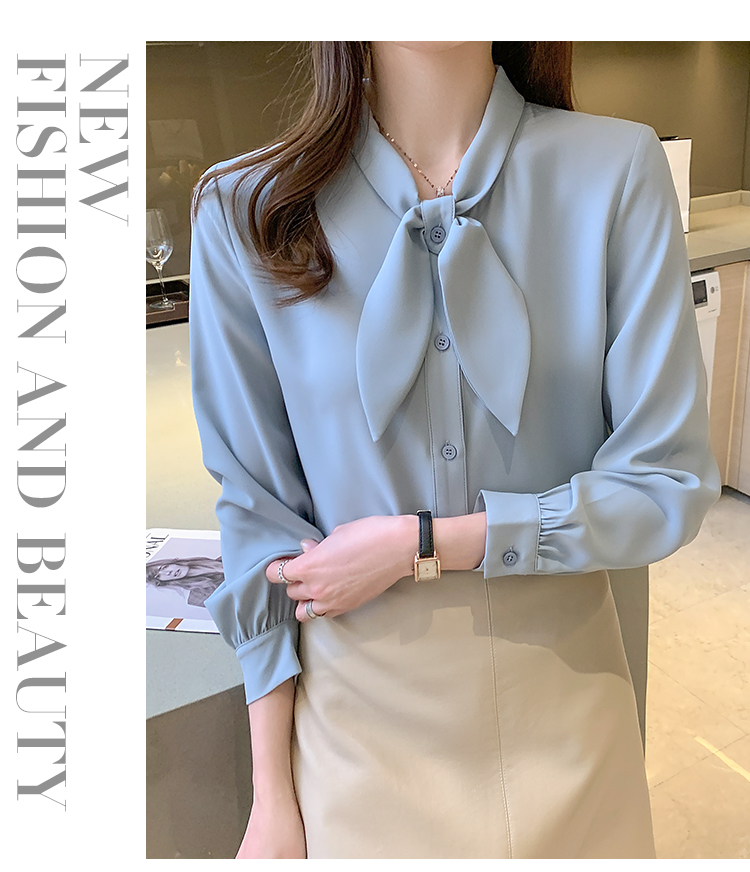 Office work just got a whole lot more fashionable! This long sleeve dapper bow tie neck shirt is perfect for everyday wear or events. It features a loose fitting body and sleeves for a comfortable fit. It's made from acetate, chiffon fabric for a breezy feel that will keep you cool during those hot summer months. This shirt comes in 2 solid colors - blue and white, and is perfect to wear with jeans, trousers